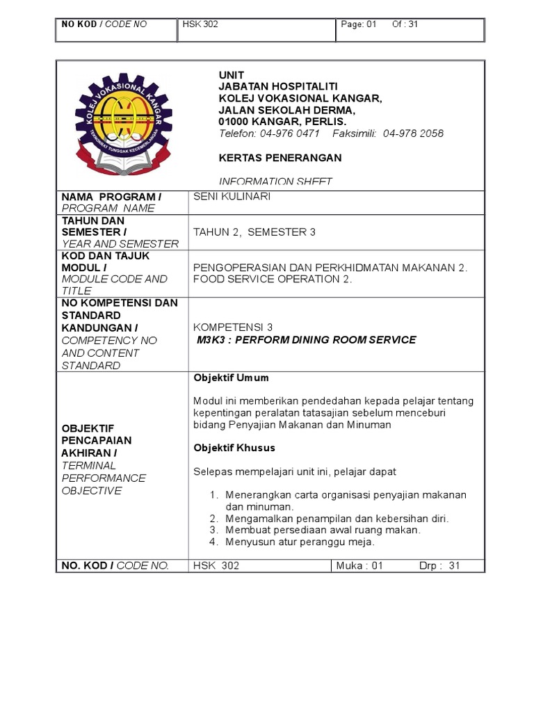 Hsk302 Perform Dining Room Service Pdf